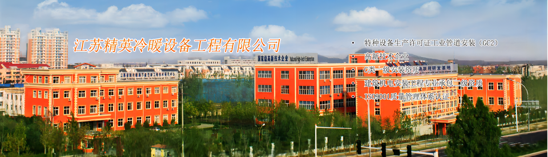 江蘇精英冷暖設(shè)備工程有限公司位于江蘇省徐州高新技術(shù)產(chǎn)業(yè)開發(fā)區(qū)第二工業(yè)園昆侖路14-2號,為高新技術(shù)企業(yè),公司擁有ISO9001質(zhì)量管理體系認(rèn)證、ISO14001環(huán)境管理體系認(rèn)證、ISO45001職業(yè)健康安全管理體系認(rèn)證、工業(yè)管道安裝(特種設(shè)備安裝、修理、改造)GC2資質(zhì)、建筑機(jī)電安裝工程專業(yè)承包貳級資質(zhì)、安全生產(chǎn)許可證、C類I級安裝資質(zhì)、農(nóng)機(jī)補(bǔ)貼定點企業(yè)及制冷設(shè)備國家標(biāo)準(zhǔn)《GB/T18430.2-2008》、《藥品冷鏈物流運作規(guī)范》、《冷鏈物流分類與基本要求》的起草單位等資質(zhì)。